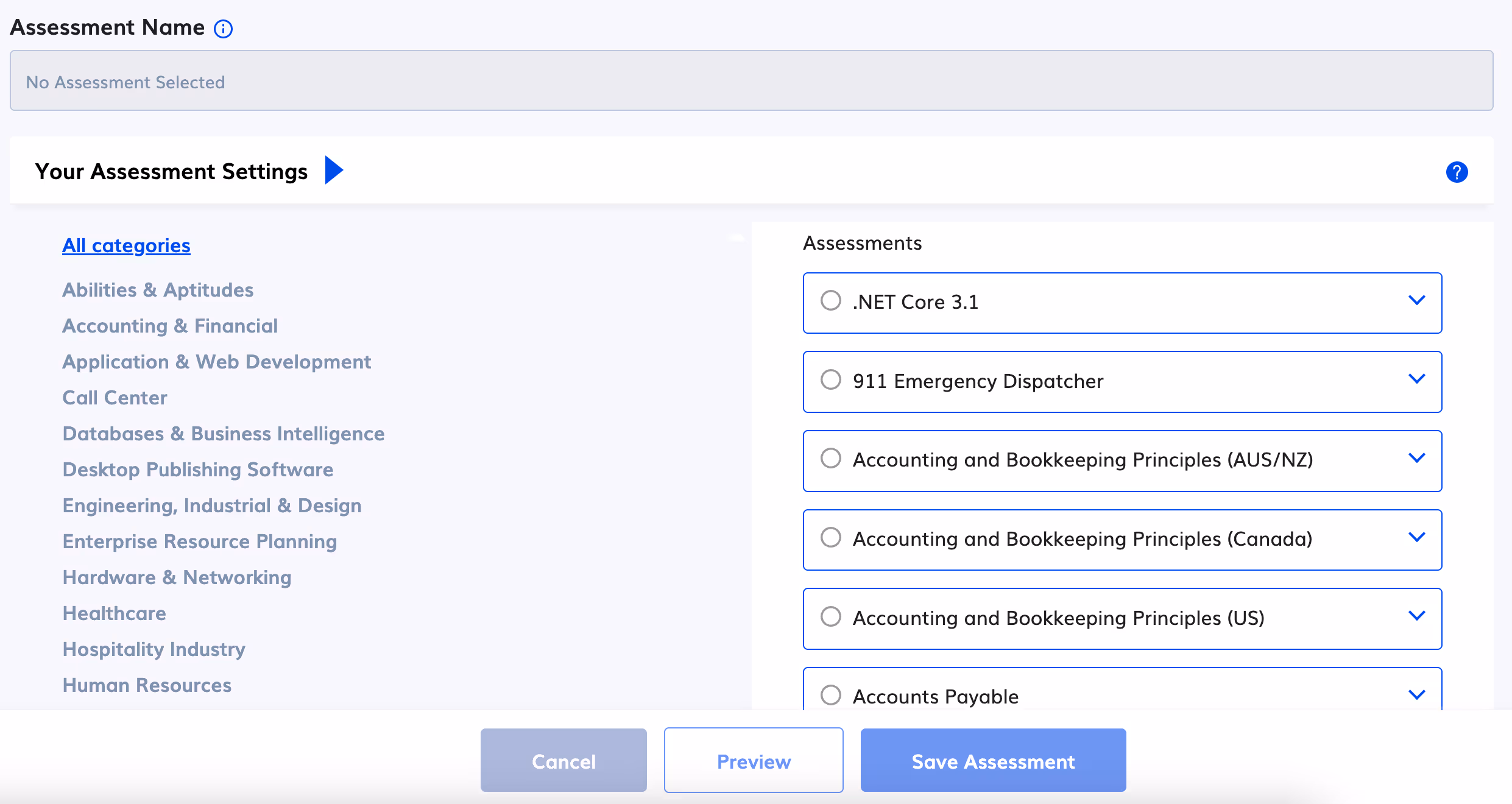 - Customize the length, difficulty, and focus of your assessments to match the job level and expectations.